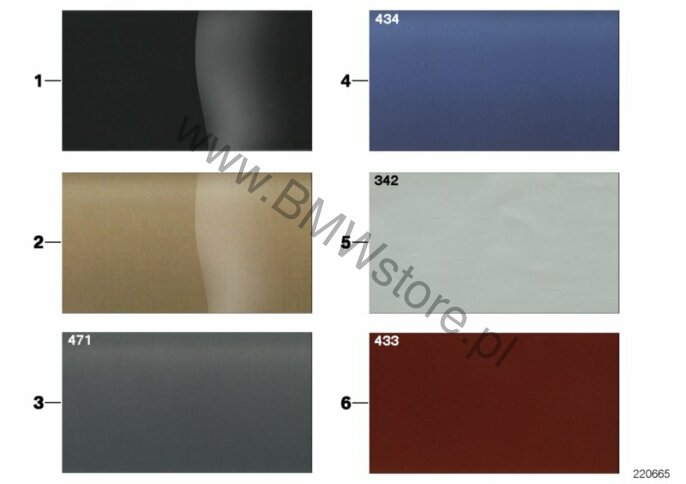 Dla samochodów z Listwy wewnętrzne (S434A) = TAK Zastosowane nazwy kolorów tego wzoru: 51 13 8 888 888 Le Mans blau metallic |