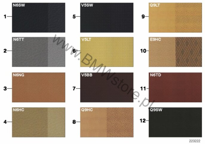 Dla samochodów z Skóra High/czarna (V5SW) = TAK Zastosowane nazwy kolorów tego wzoru: 51 13 8 888 888 = czarny |