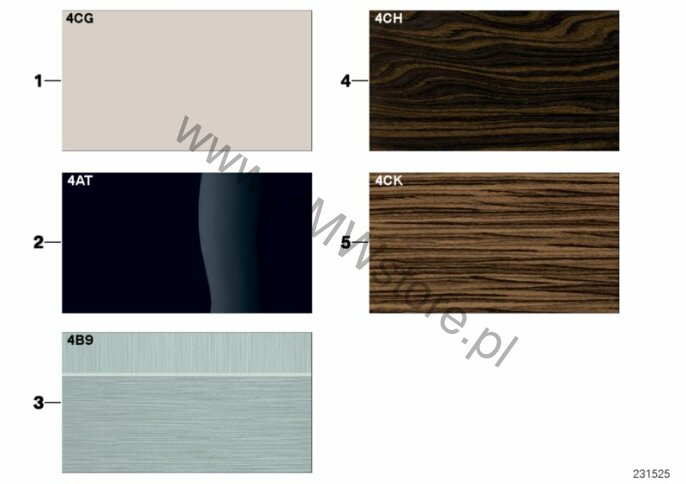 Dla samochodów z Listwy wewnętrzne "satin-silber" matowe (S4CGA) = TAK Zastosowane nazwy kolorów tego wzoru: 51 13 8 888 888 = Satinsilber blady |