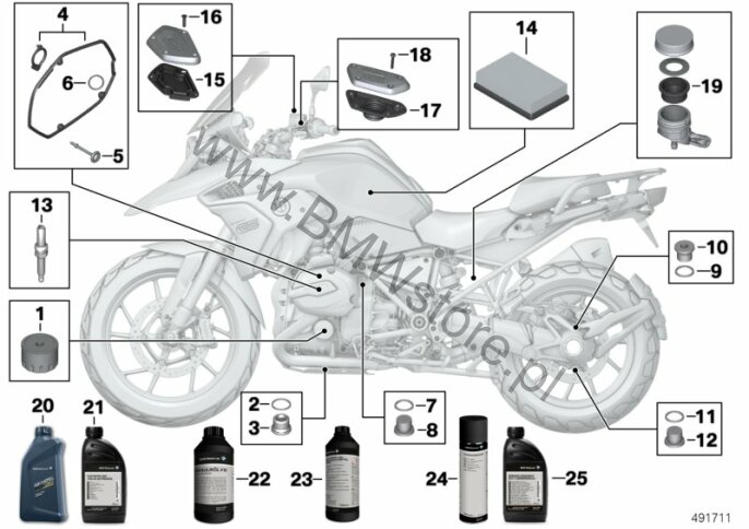 Wymiana oleju silnikowego / przegląd dla BMW K50 (R 1200 GS, R 1250 GS) R 1200 GS (0A01, 0A11) USA