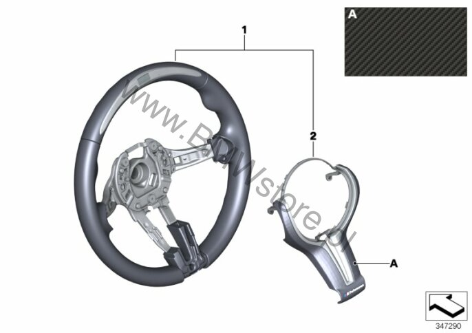 Dla samochodów z Lust. wew./zew. z automatyką przyciemn. (S430A) = TAK lub Elektryczna regulacja foteli z pamięcią (S459A) = TAK Steering wheel 32 30 2 344 148 zestaw zawiera |