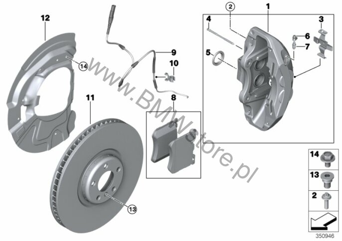 Dla samochodów z Samochód opancerzony (S106A) = NIE i Samochód opancerzony Security Plus (S109A) = NIE Zacisk hamulcowy prawy 34 11 7 847 242 |