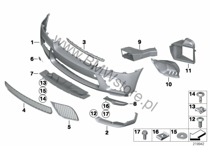 Dla samochodów z Park Distance Control (PDC) (S508A) = NIE i Side view camera (S5DKA) = NIE Obud. zderz., przedn., cz. górna, grunt. 51 11 2 159 256 |