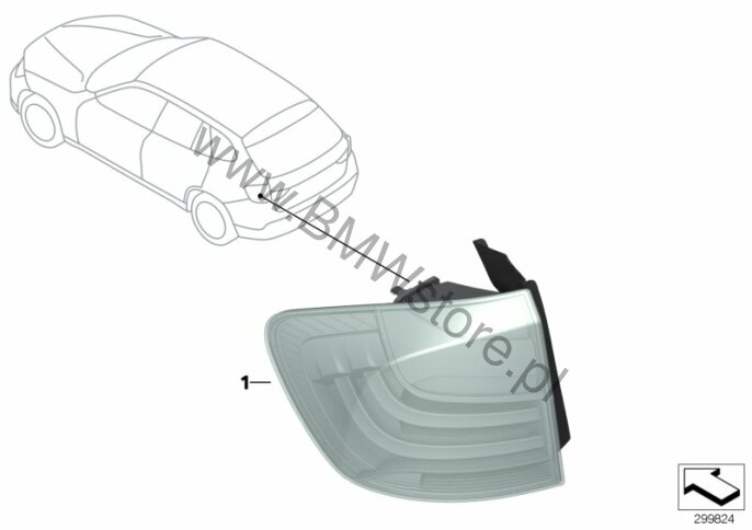 Doposażenie musi zostać zakodowane ***** tylko w połączeniu z modułem przypodłog. ***** Lampa na pokrywie bagażnika lewa 63 21 2 990 113 |