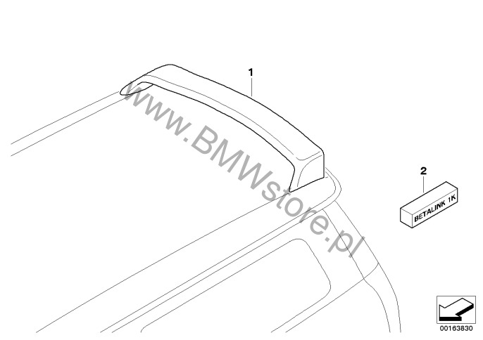 Dla samochodów z Wersja krajowa Chiny (L8AAA) = NIE i Lust. zewn. czarne/Góra w kol. nadwozia (S381A) = TAK Spoiler dachowy 51 71 0 414 771 |
