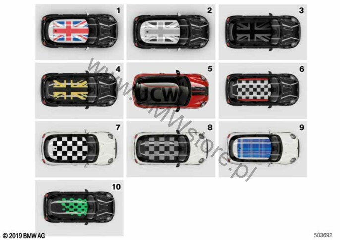 Dekor dachu standardowego dla Mini F55 LCI Cooper 5-drzwiowy ECE