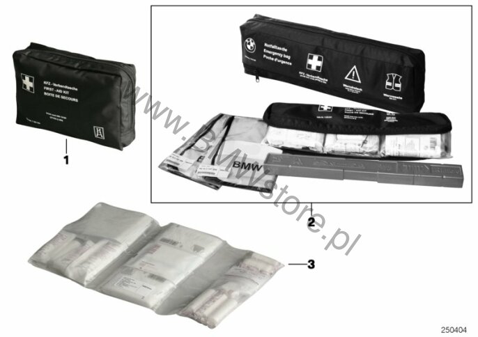 82 26 2 210 667 Zawartość: 1 x trójkąt ostrzegawczy 1 x zestaw pierwszej pomocy (DIN 13164) 2 x kamizelka odblaskowa |