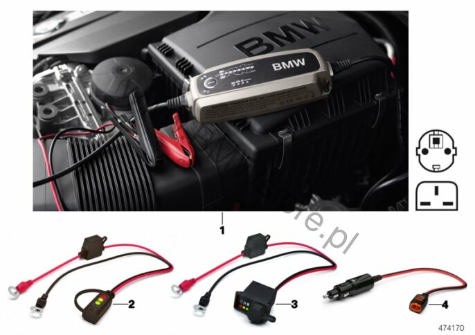 Zastosowanie wyłącznie do ładowania akumulatora motocykla BMW przez gniazdo 12 V. Wtyczka ładowania dla gniazda motocykla 61 43 2 411 680 |