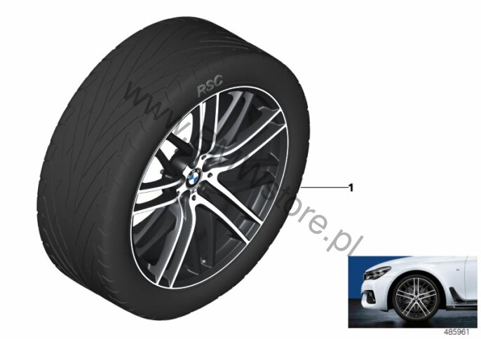 Dla samochodów z Wersja krajowa Japonia (L807A) = NIE i Wskaźn. ciśnienia pow. w oponach (S2VBA) = TAK Opony Runflat z właściwościami awaryjnymi ***** Ogumienie mieszane Przednia oś 245/35R21 96Y Tylna oś 275/30R21 98Y Opony Pirelli P ZERO RSC Koło tarczowe czarne wysoki połysk Zestaw kół kpl. letnich czarnych RDC 36 11 2 459 619 |