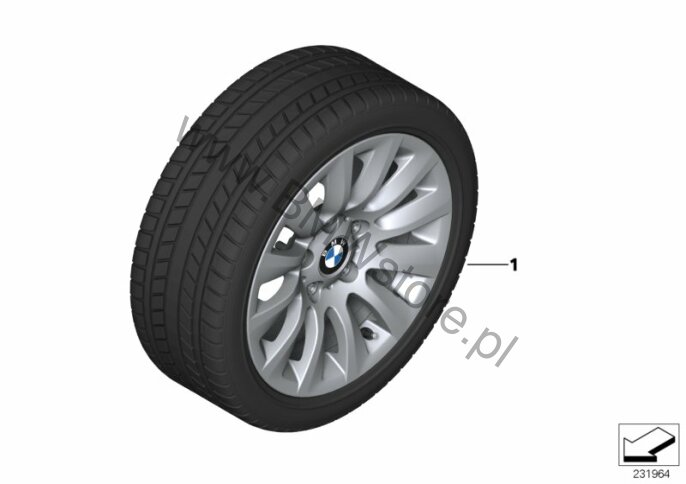 Dla samochodów z Ogumienie zdatne do jazdy po uszkodzeniu (S258A) = TAK i Sportowy układ hamulcowy (SZP1A) = NIE Opony standardowe bez właściwości awaryjnych ***** Opony M+S Goodyear Ultra Grip 7+ Scheibenrad mit ET:31 Koło zimowe kpl., alu. 36 11 2 183 519 tylko w połączeniu z |