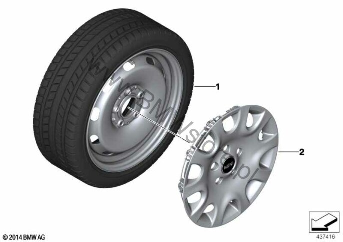 Kompletne koło zimowe stalowe - 15" dla Mini F55 LCI Cooper 5-drzwiowy ECE