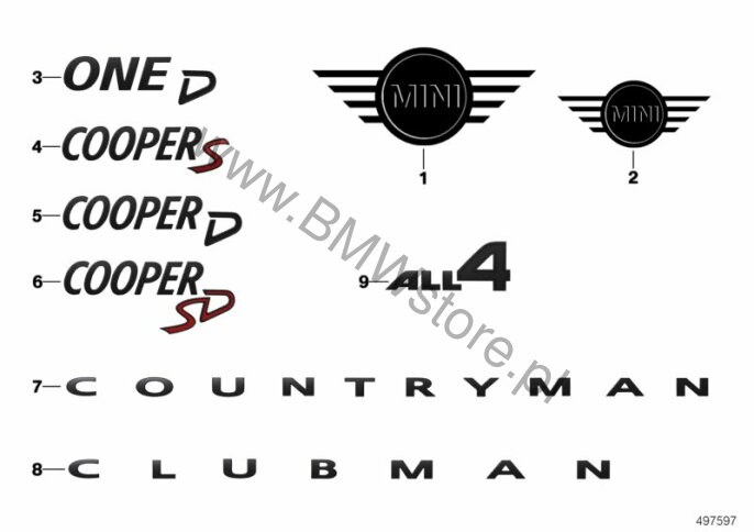 Emblematy / Ciągi napisów dla Mini F55 Cooper B38C 5-drzwiowy ECE