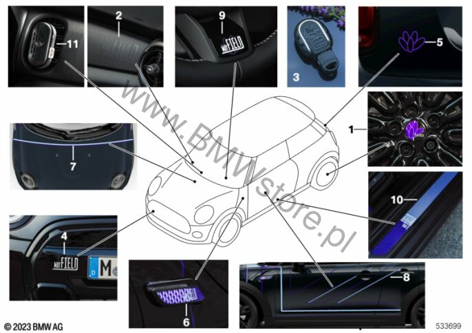 021 - Sticker Front Mayfield Wskazówka: Część musi być zamówiona z kodem motywu 022 - Sticker Rear Mayfield 51 14 5 A35 372 |