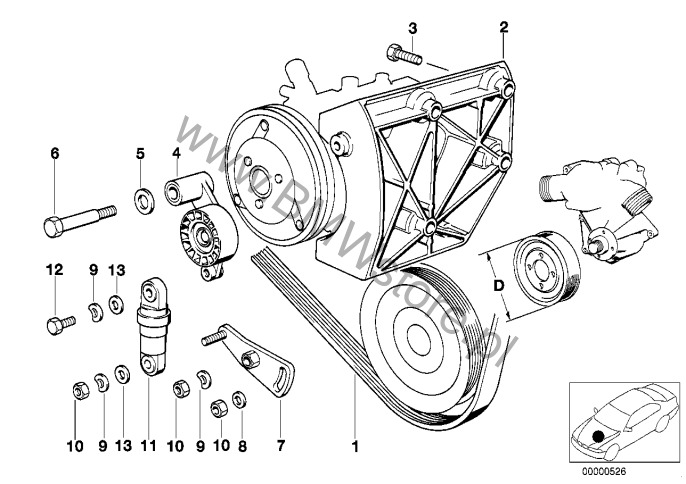 Napęd pasowy pompa wody/spręż. klimat. dla BMW 8' E31 850Ci M70 Coupé USA
