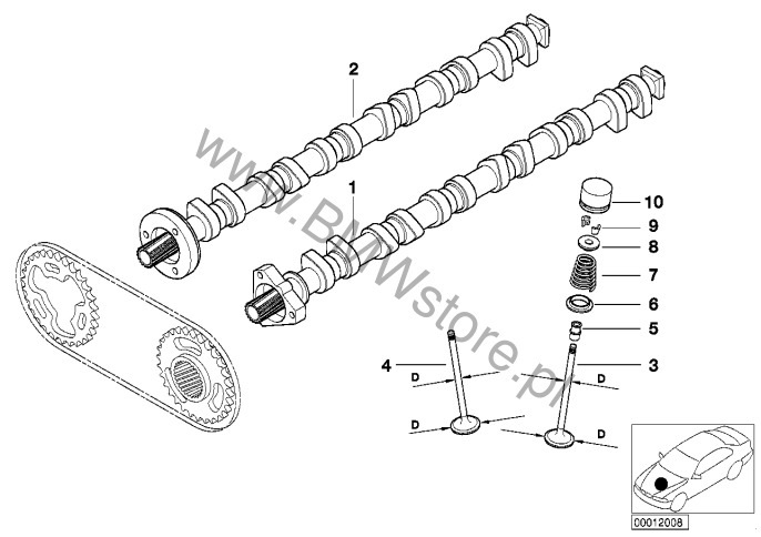 Sterowanie zaworów-wałek rozrządu/Smar. dla BMW 3' E46 325i Limousine IDN