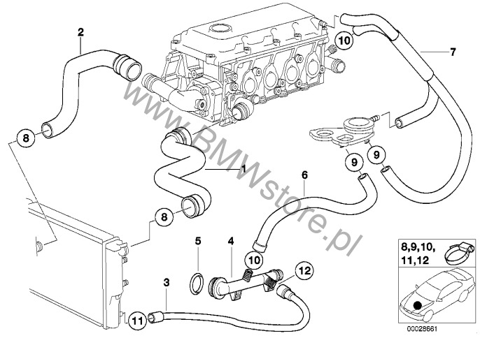 Prowadzenie węży wody ukł. chłodn. dla BMW 3' E36 316i 1.9 Compact ECE