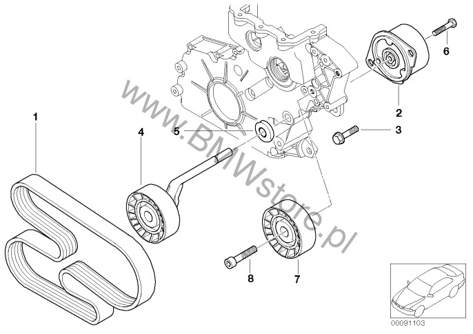 Napęd pasowy pompy wody/prądnicy dla BMW X3 E83 X3 2.0d SAV ECE
