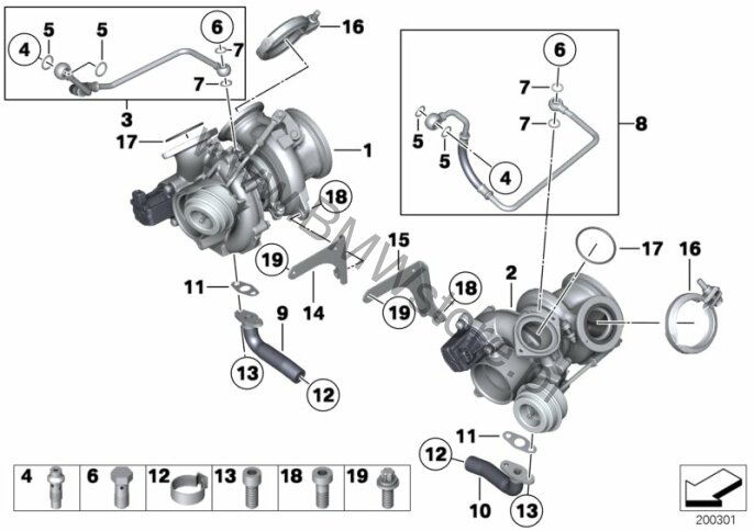 Dla samochodów z Wersja krajowa Chiny (L8AAA) = TAK Koniecznie uwzględnić instrukcję naprawy 11 65 020 ! ***** Turbosprężarka 11 65 7 562 050 tylko w połączeniu z |