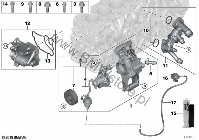 Układ chł. - pompa pł. chł./termostat dla BMW 5' G30 LCI 530d Limousine ECE