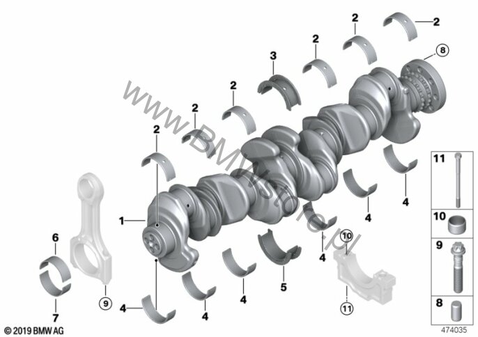 Wał korb. zesp. korb. z panewk. łożyska dla BMW 5' G30 LCI 530d Limousine ECE