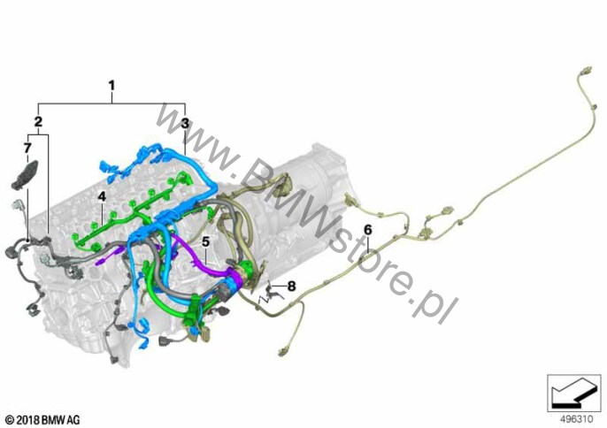System rekuperacji (01CE) = NIE Wiązka kablowa modułu silnika 1 12 51 8 490 134 |