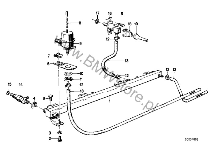 Zawory i przewody instalacji wtryskowej dla BMW 7' E23 732i Limousine ECE