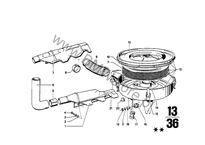 Tłumik szmerów ssania/wkład filtra dla BMW 1500-2000CS 2000 Limousine ECE
