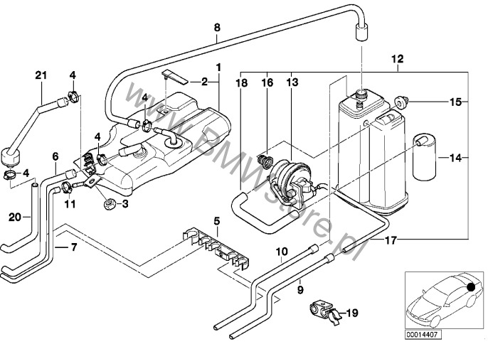 Zbiornik wyrówn./filtr z węglem aktywn. dla BMW 5' E39 528i Limousine USA