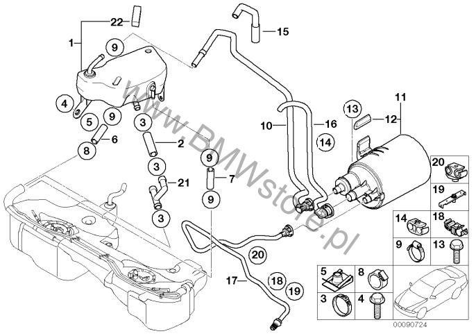 Zbiornik wyrówn./filtr z węglem aktywn. dla BMW 3' E46 318ti N42 Compact ECE