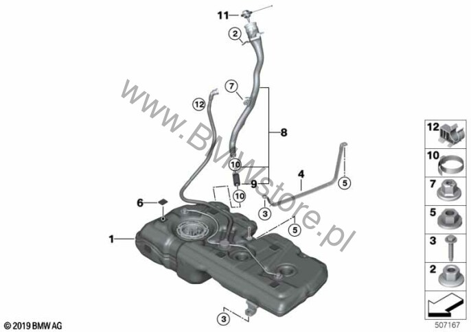Większy zbiornik paliwa (01AG) = NIE Wersja kraj. sterowania, Brazylia 00464 (08LB) = NIE Wersja krajowa Chiny (08AA) = NIE Nakrętka z podkładką 22 31 6 760 944 |