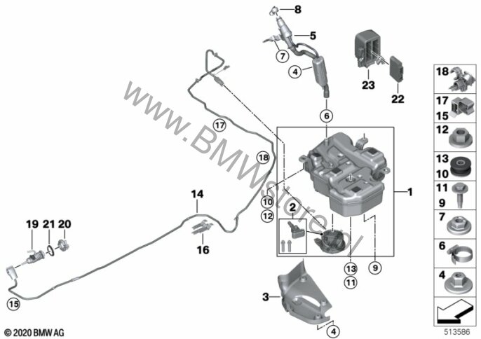 Redukcja spalin EU 3 (0169) = NIE System napełniania SCR 16 19 7 454 407 |