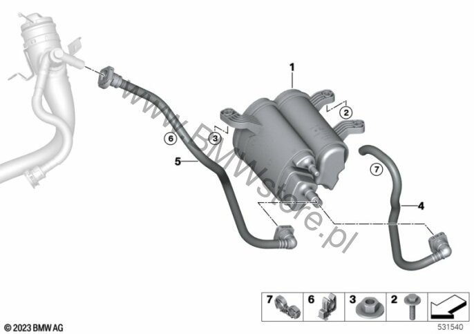 Wersja krajowa Chiny (08AA) = NIE Wersja krajowa Korea (0802) = NIE Przewód odpowietrzający 16 13 7 562 013 |