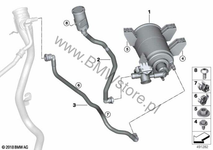 Filtr z węglem aktywnym/Odp. paliwa dla BMW 4' G23 Convertible LCI 420i Cabrio ECE