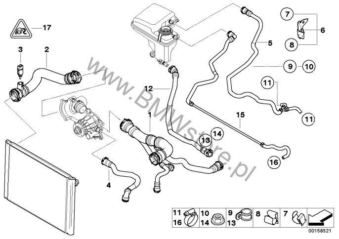 Prowadzenie węży wody ukł. chłodn. dla BMW 7' E65 760i Limousine USA