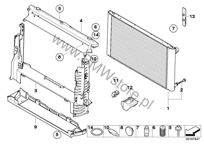 Dla samochodów z Sportowa automatyczna skrzynia biegów (S2TBA) = TAK lub Automatyczna skrzynia biegów (S205A) = TAK Uchwyt chłodnicy, dolny 17 11 7 542 517 |