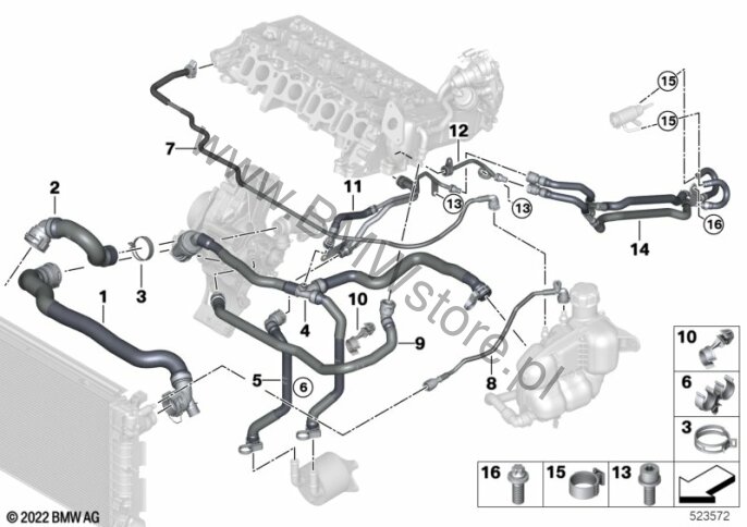 Redukcja spalin EU 3 (0169) = NIE Wąż wys.ciś.p.pł.chłodz.ukł.recyr.spalin 11 53 8 584 837 |