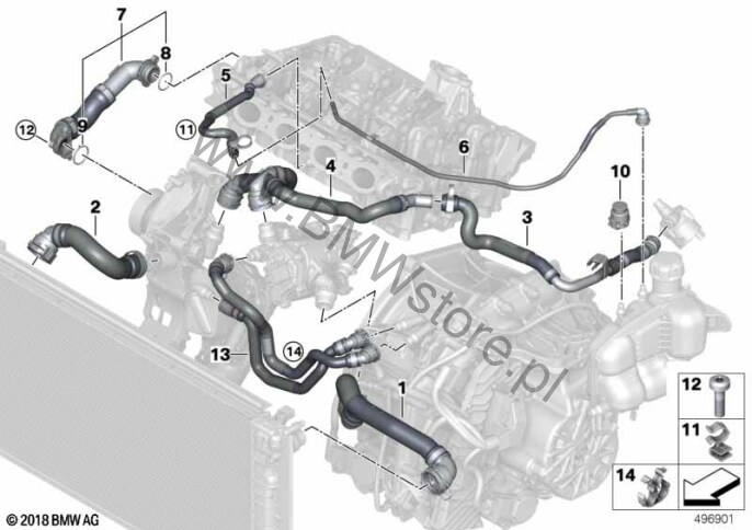 Węże płynu chłodzącego układu chłodzenia dla BMW 1' F40 128ti 5-drzwiowy ECE