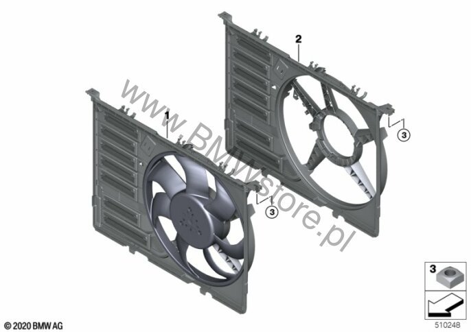 Korpus wentylatora, elementy dod. dla Mini F56 BEV Cooper SE 3-drzwiowy ECE