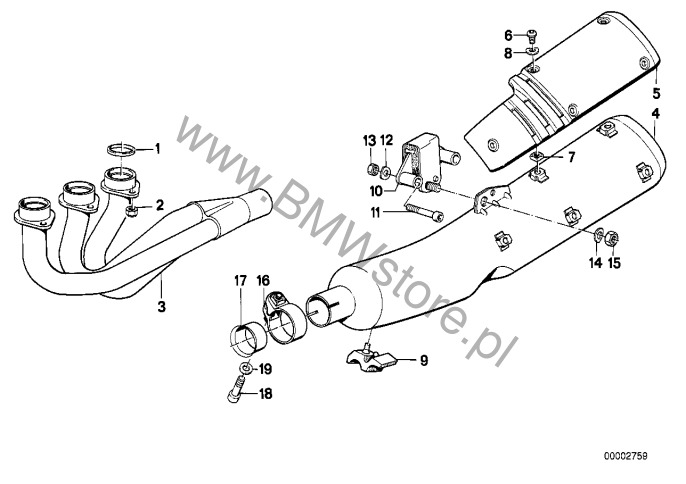 Układ wydechowy dla BMW K569 (K 75, K 75 C, K 75 S, K 75 RT) K 75 RT (0565,0573) ECE