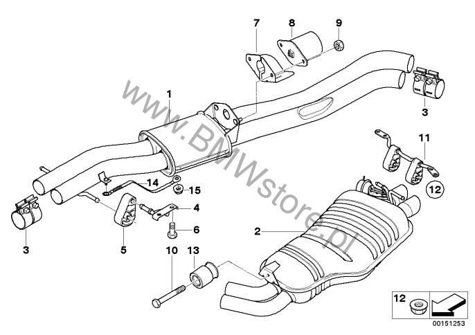 Dla samochodów z Automatyczna skrzynia biegów (S205A) = TAK i Pakiet areodynamiczny M (S715A) = TAK Tłumik tylny 18 30 3 415 466 |