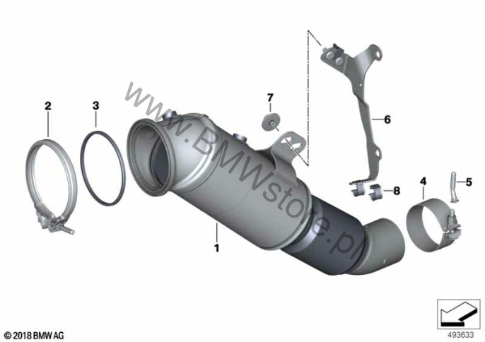Norma spalin C6B RDE (01DC) = NIE Norma spalin EU6 rde II (01DF) = NIE Wersja krajowa Chiny (08AA) = NIE Norma spalin EU6 RDE (01DE) = NIE RP katalizator w pobliżu silnika 18 32 8 682 784 |