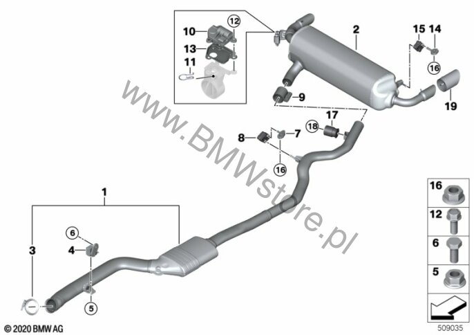 Układ wydechowy tylny dla BMW 3' G21 Touring 320e ECE