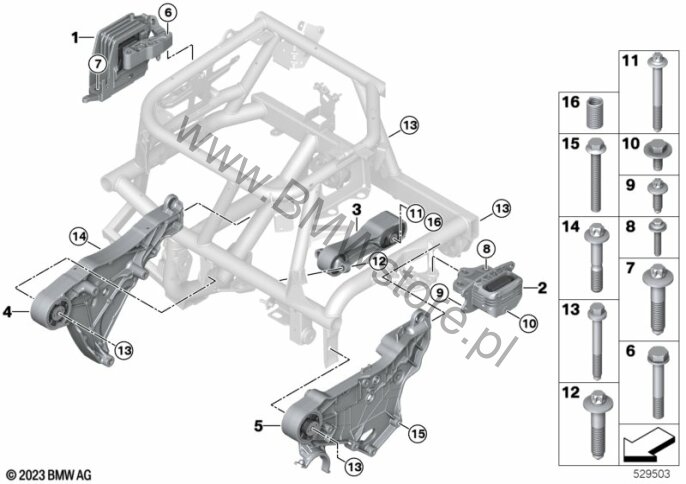 Podzespół mocujący elektr.zespołu napęd. dla Mini F56 BEV LCI Cooper SE 3-drzwiowy ECE