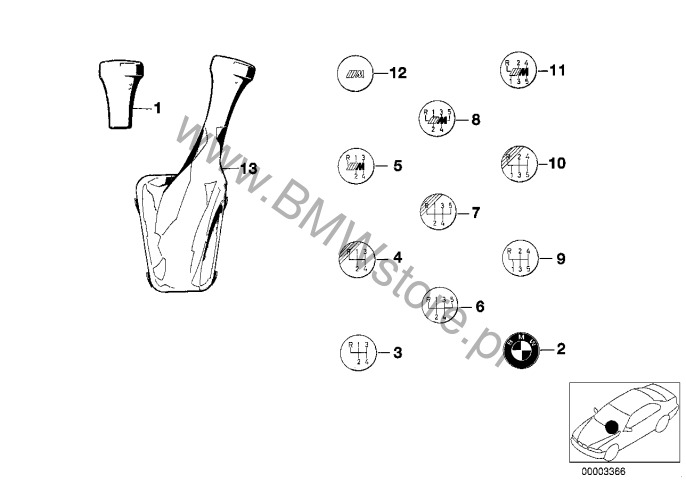 Przyc. przeł./Osłony/Plakietki dla BMW 3' E30 325e 2-drzwiowy ECE