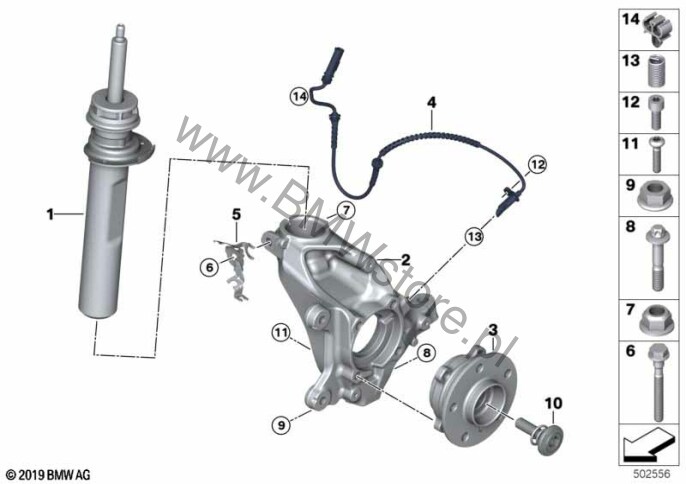 Kol. McPh.przed./łoż. wah./łoż. koła dla Mini F56 BEV LCI Cooper SE 3-drzwiowy ECE