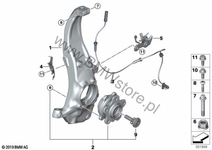 Zwrotnica/łoż.koła przedn.nap.na cz.koła dla BMW 5' F90 M5 LCI M5 Limousine ECE