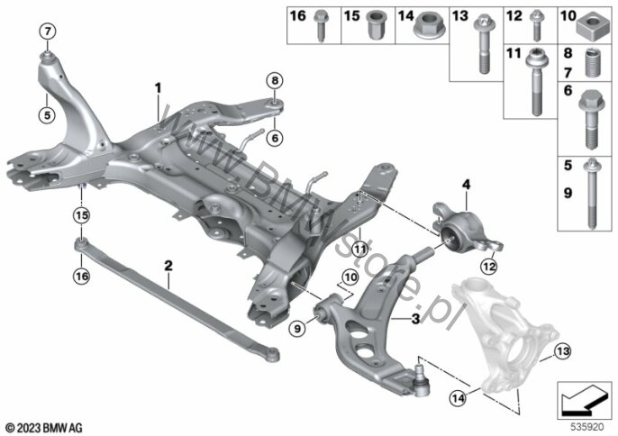 Wsp.przed.osi/wah.poprz.nap.na czt.koła dla BMW 1' F70 M135 xDrive 5-drzwiowy ECE