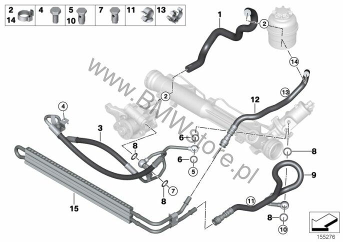 Hydr. układ kier./przewody oleju dla BMW 1' E82 135i N55 Coupé USA