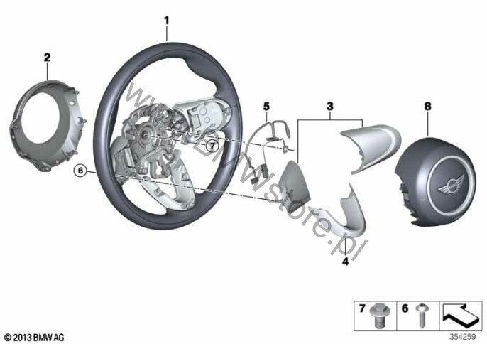Kierownica skórzana Nappa (02XD) = NIE Sportowa automatyczna skrzynia biegów (02TB) = NIE John Cooper Works skórzana kierownica (02XC) = NIE Kierownica sportowa MINI Yours Sport (02XB) = NIE SPORT. SKRZ. BIEGÓW ZE SPRZĘGŁEM PODW. (02TC) = NIE Przewód połączeniowy kierownicy 32 30 6 864 895 |