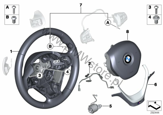 Dla samochodów z Podgrzewanie kierownicy (S248A) = NIE i Kierownica sportowa skórzana (S2XEA) = NIE i Driving Assistant (S5ASA) = TAK Kier. sport skóra, dźwignie wahadłowe 32 30 6 878 253 |